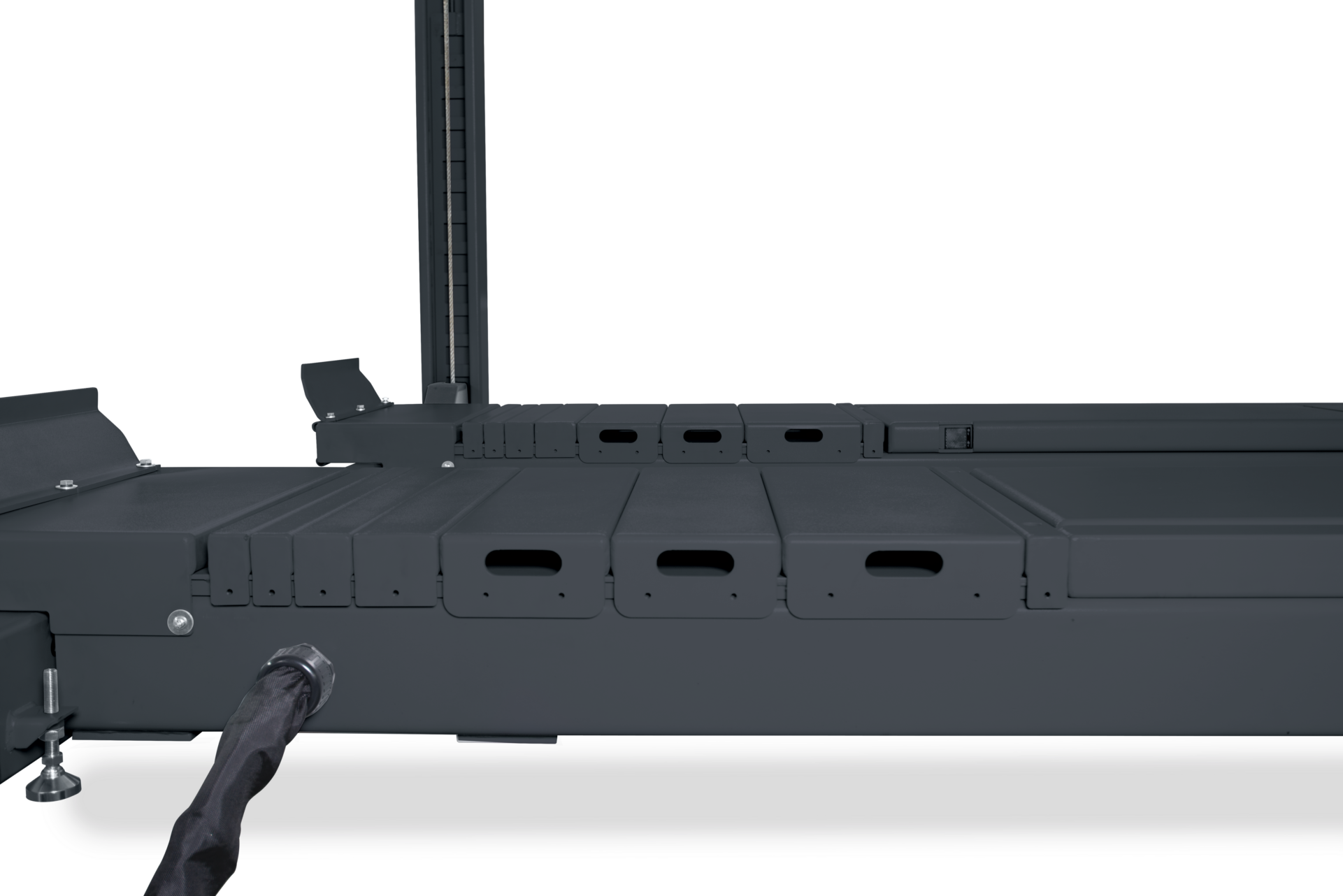 - Wide tracks allow safe and comfortable driving onto the lift from small passenger vehicles to utility vehicles or SUVs without having to change the track width.