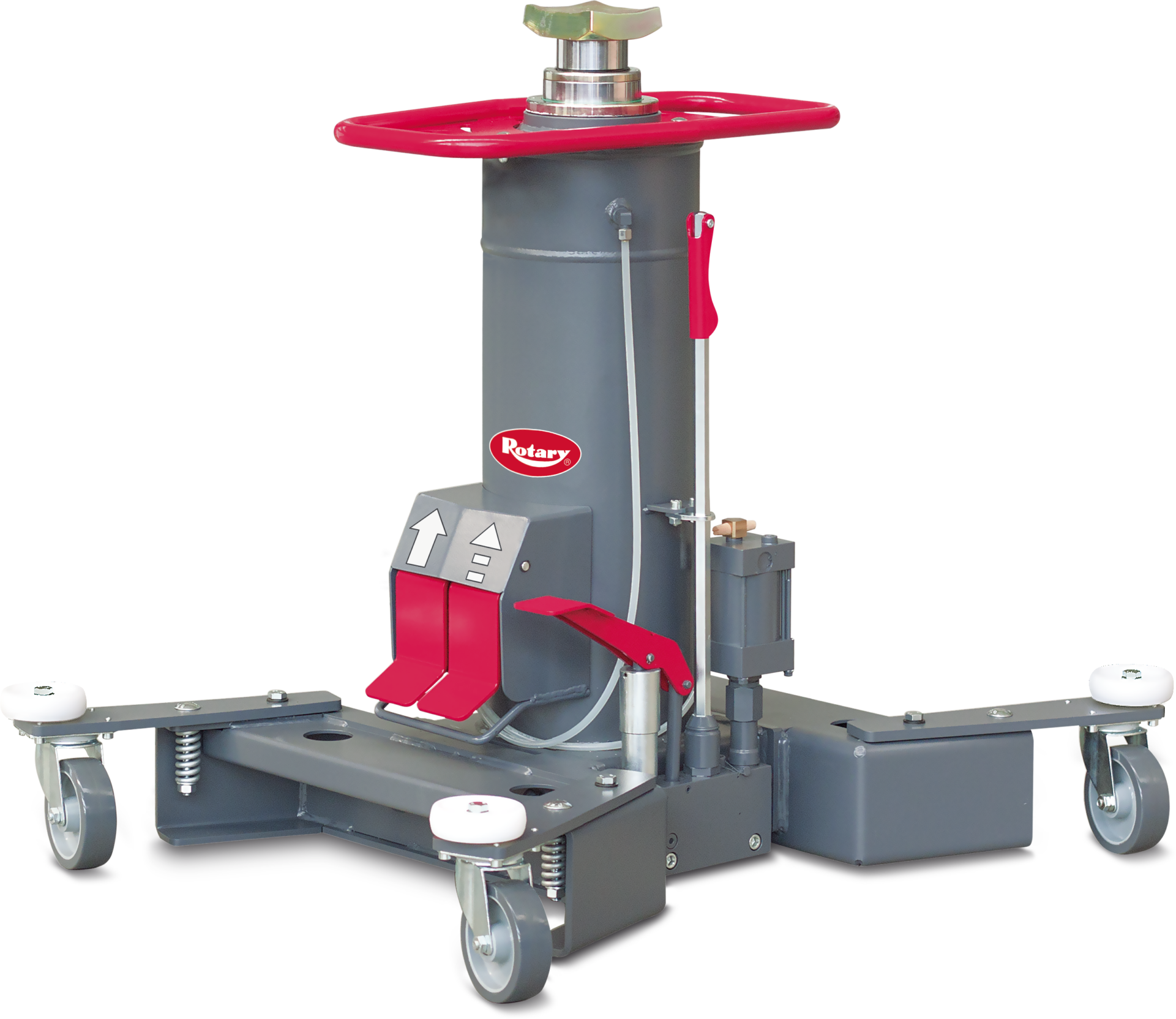 Operation via foot pedals – the hands remain free to carry out work on the vehicle.
