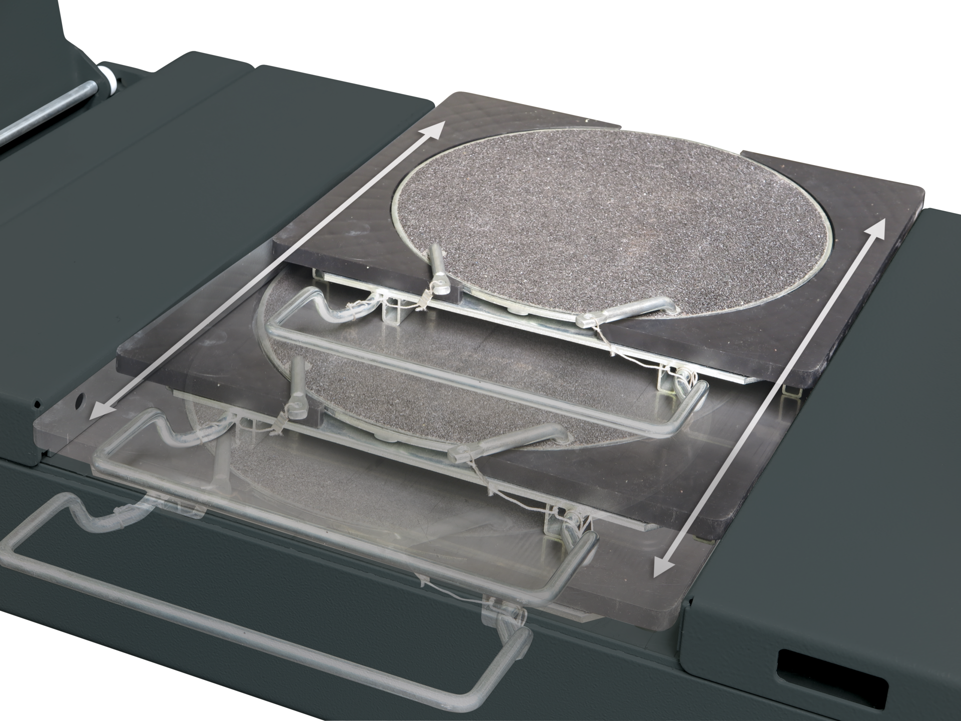 - Sturdy plastic balls of the pneumatically lockable sliding plates allow for reliable and smooth operation and ensure a long service life.