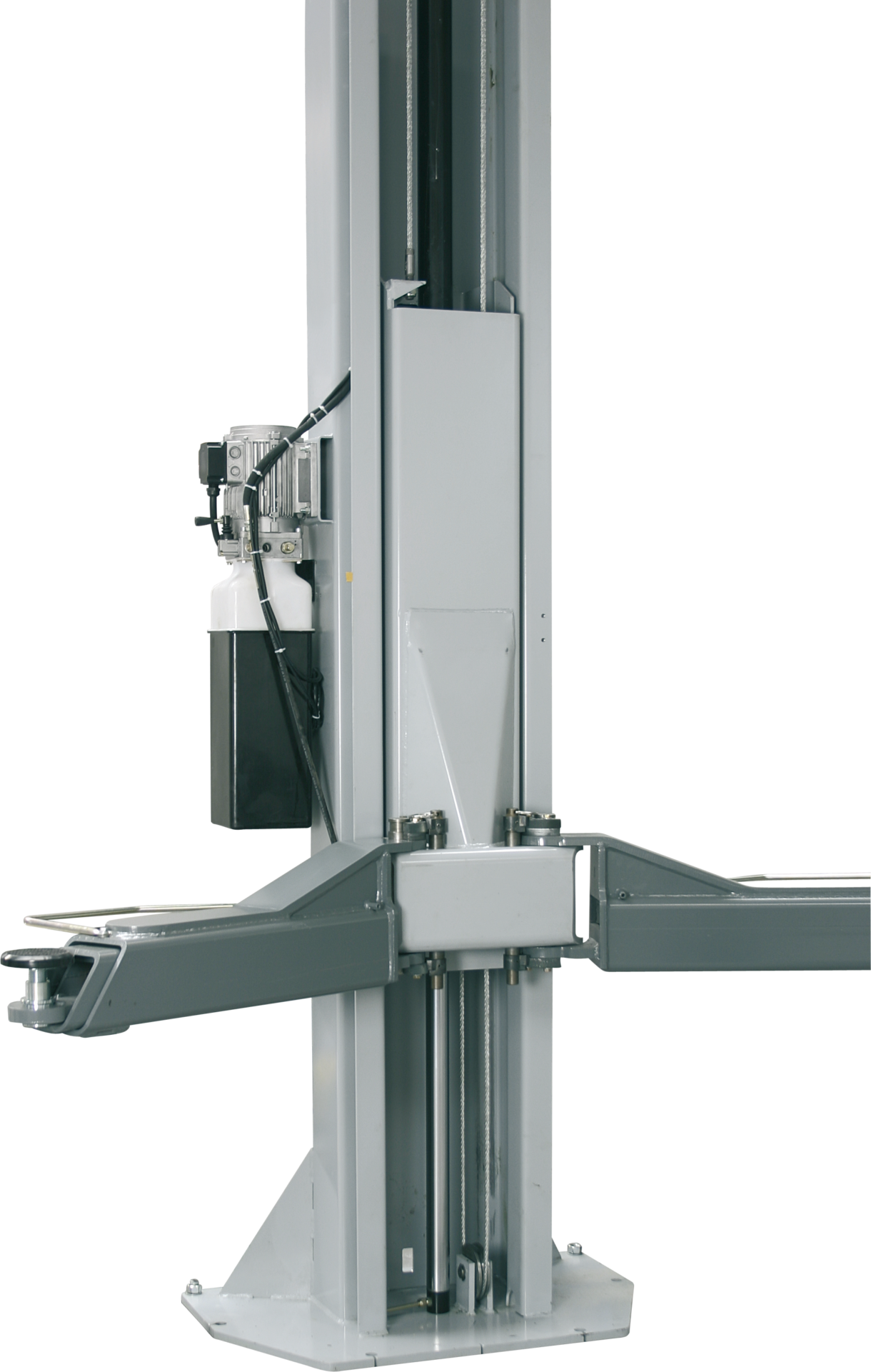 - Poleas de sincronización de carga libre aseguran la carga durante el proceso de elevación y descenso Sistema hidráulico asegurado por válvula antirretorno que incluye cilindro de alta presión sin mantenimiento en ambos postes
