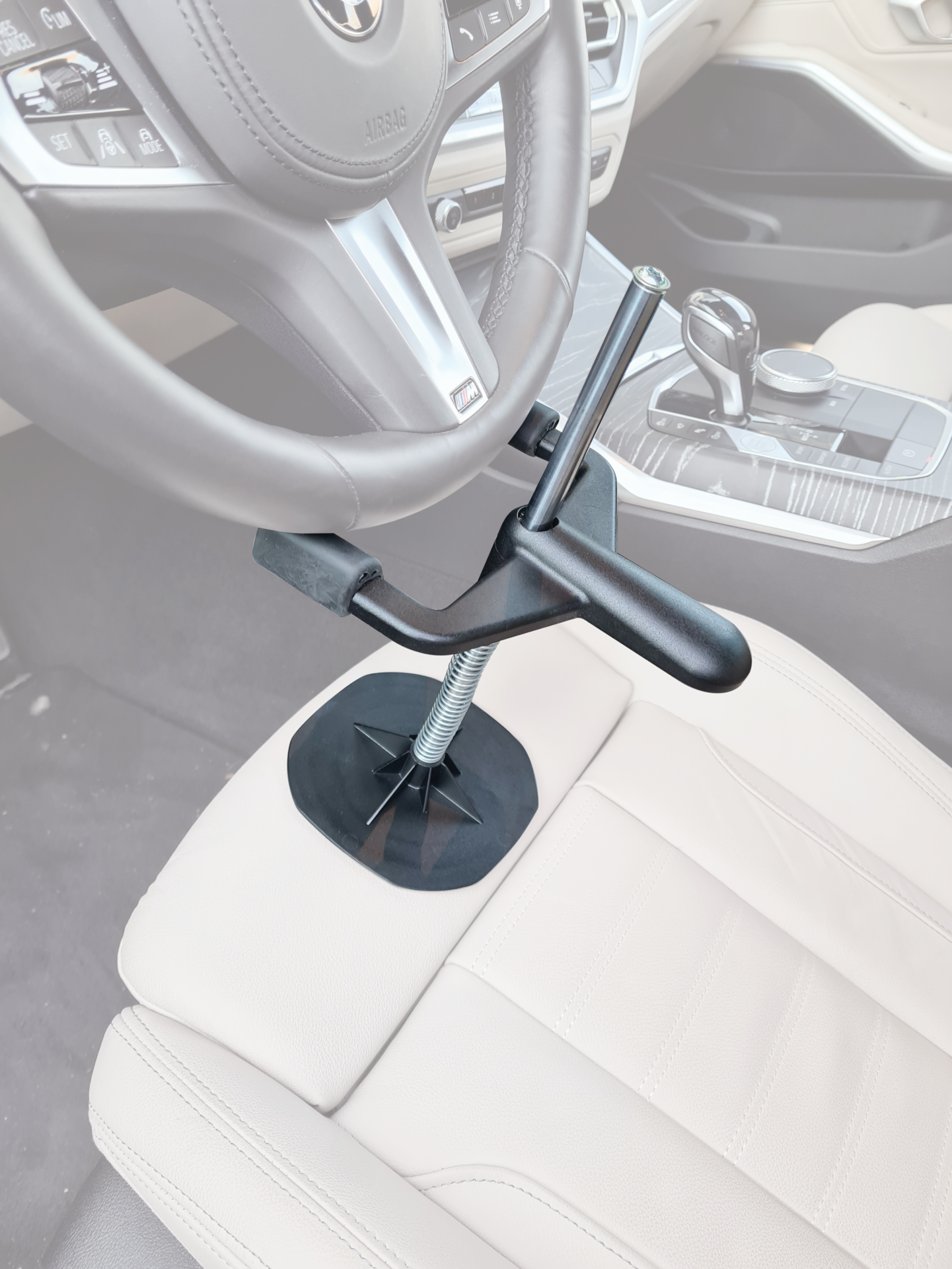Blocage volant en matériau plastique avec protections en caoutchouc antidérapant pour volant et siège