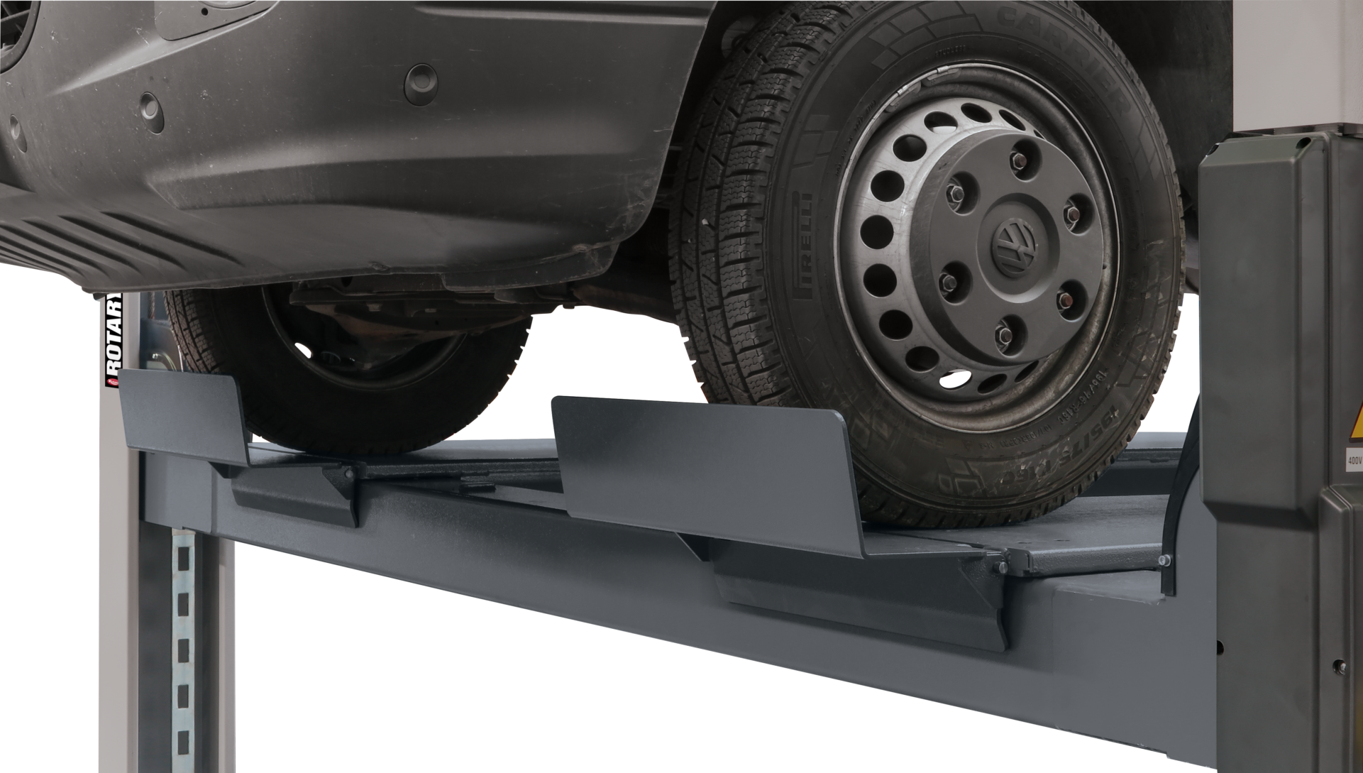 • Un grand passage de roues entre les colonnes permet de monter de grandes camion­nettes, des camping-cars et des voitures particulières.
