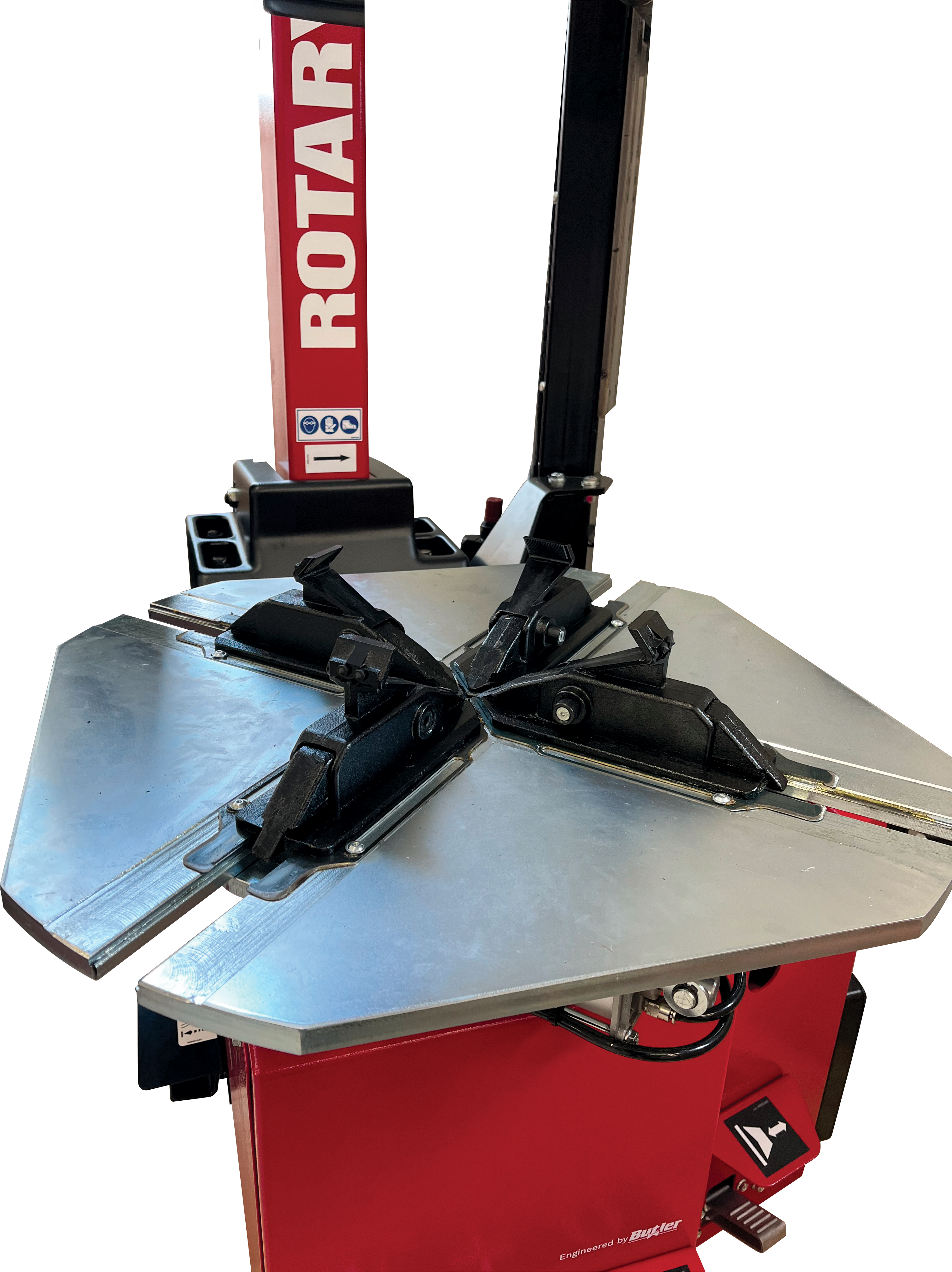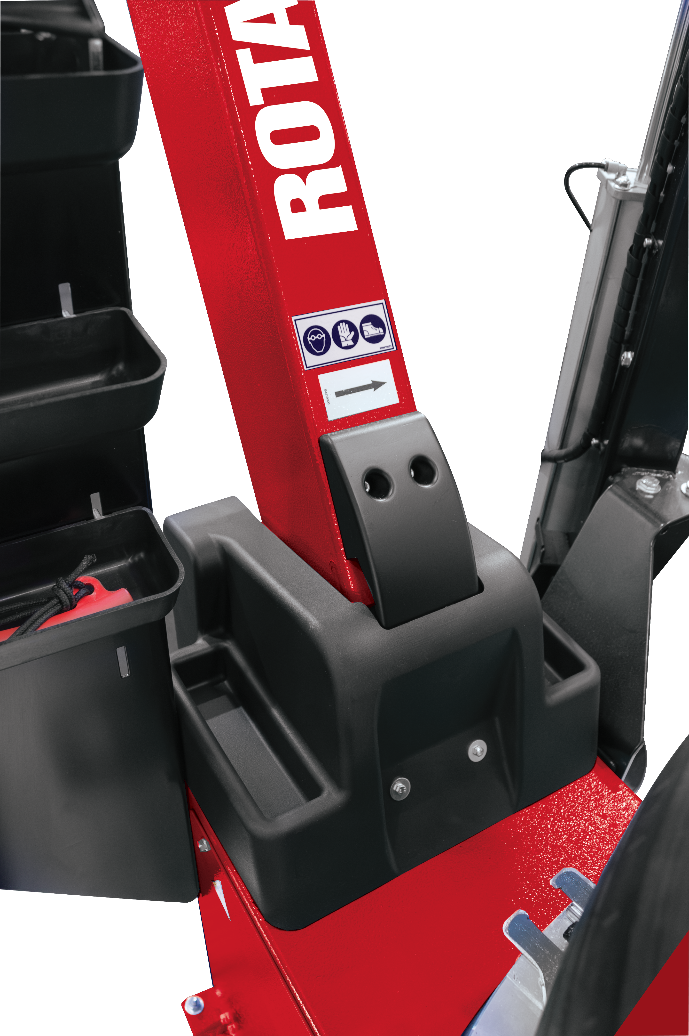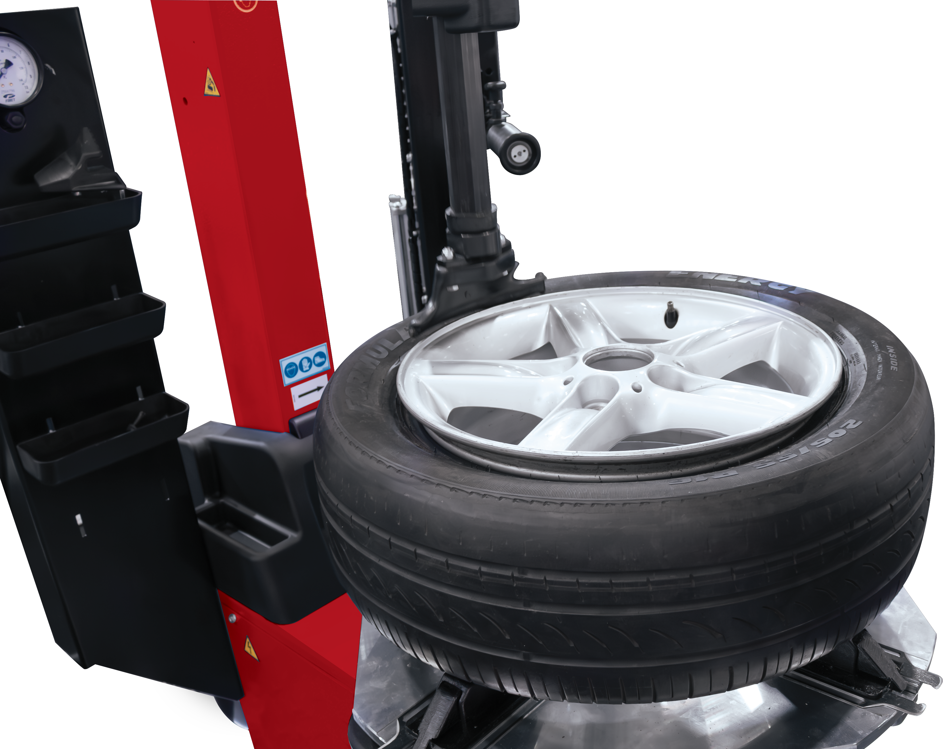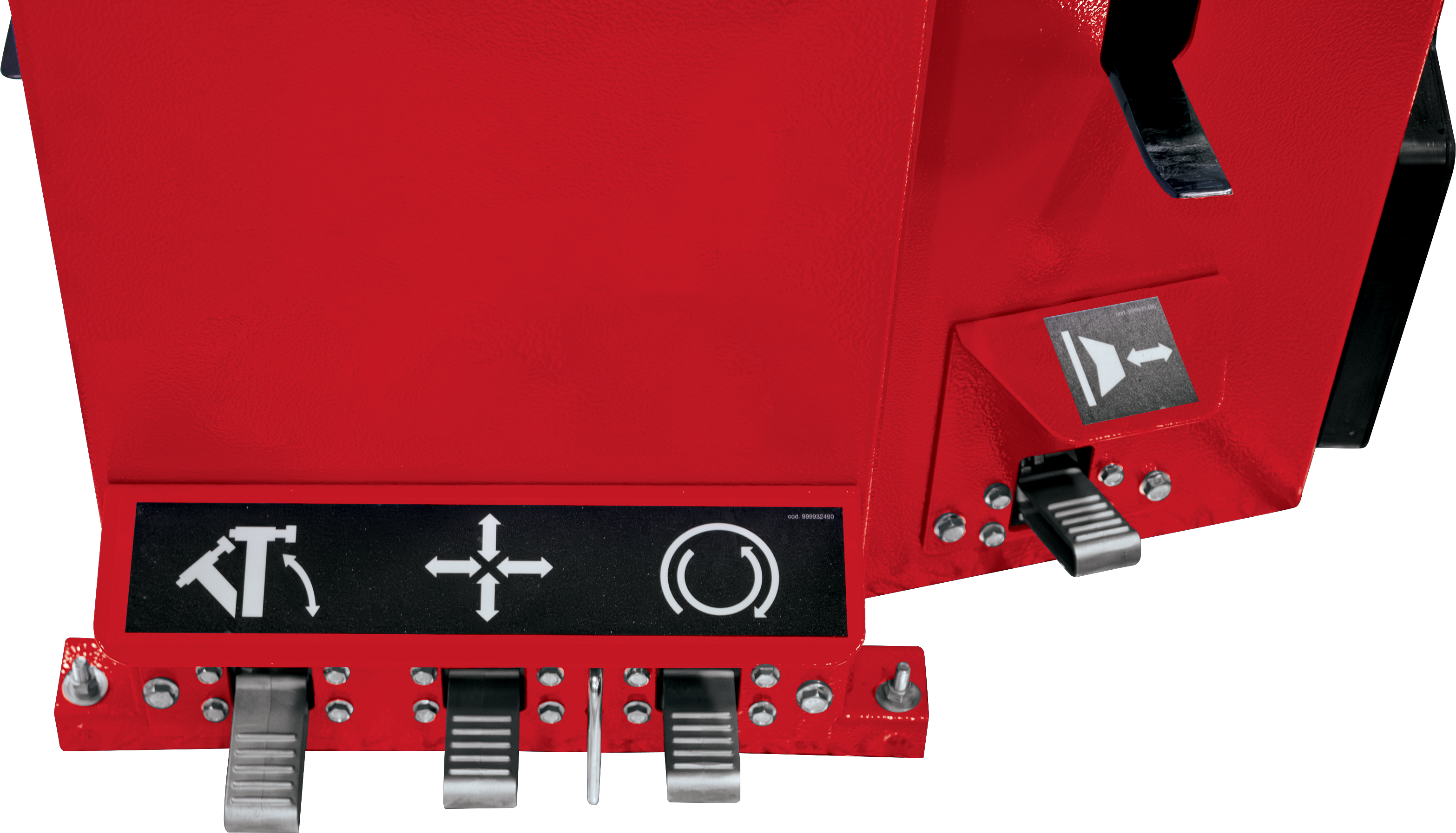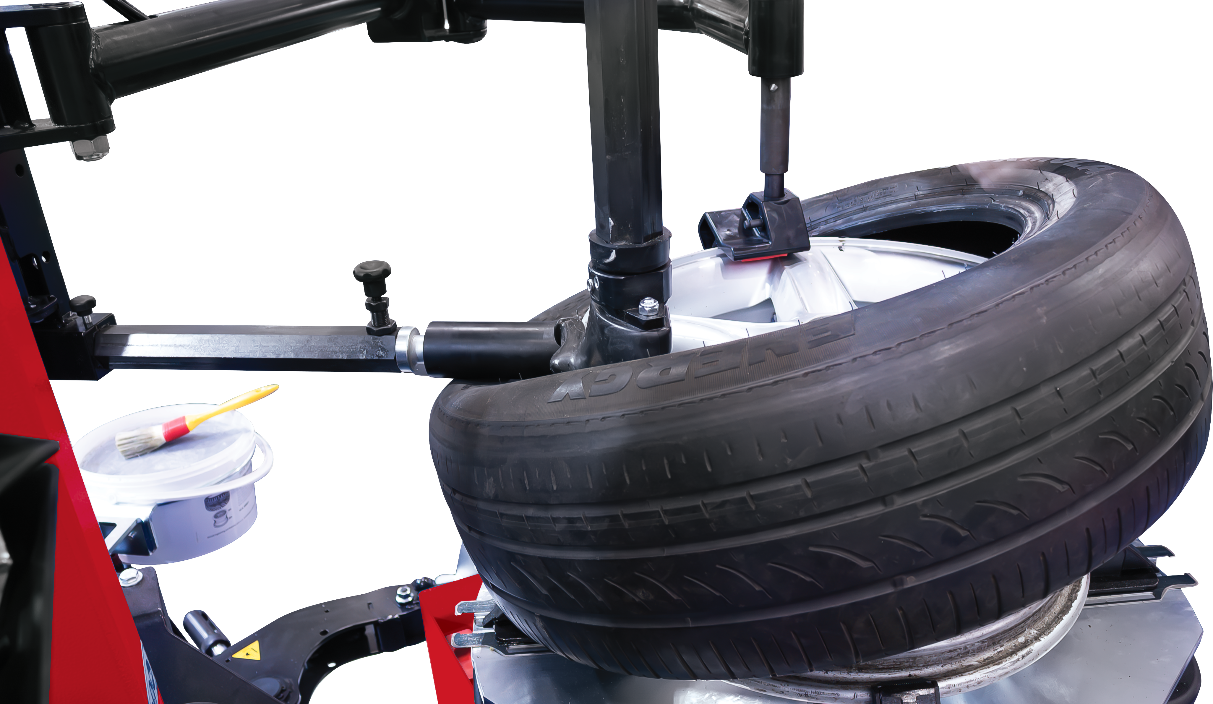 Le châssis et la colonne basculante sont extrêmement robustes et permettent de travailler sur tous les types de roues de voitures et de fourgons, garantissant une sécurité maximale pour le pneu et la jante.
