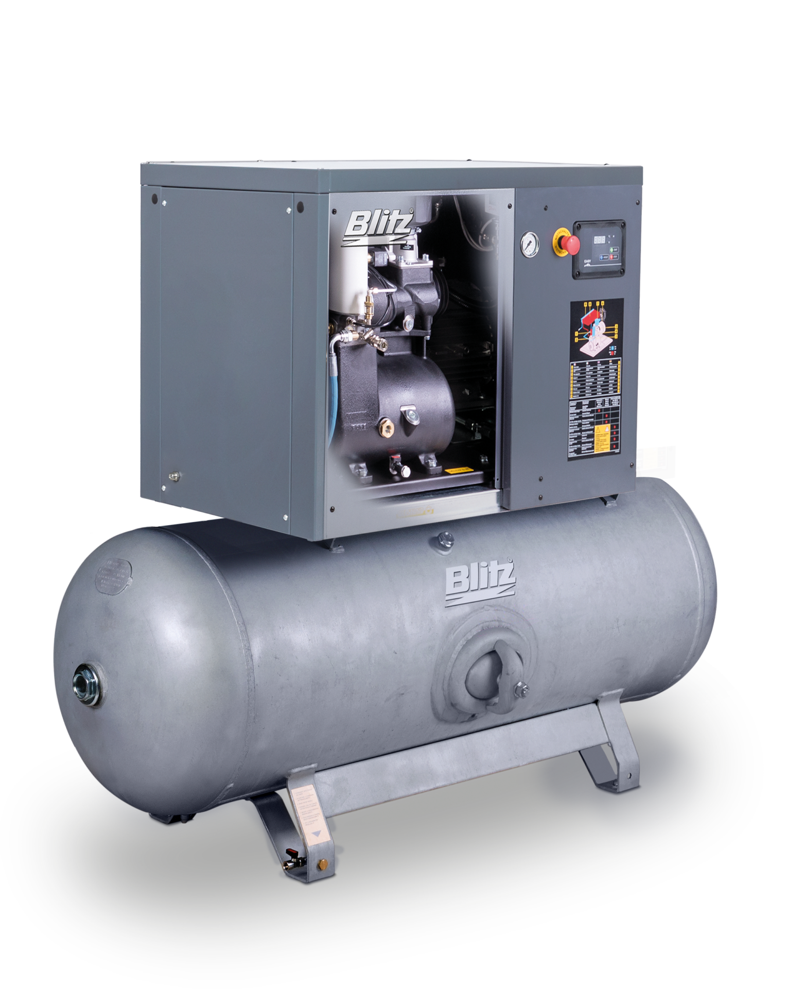 • Serbatoio dell’aria compressa generosamente dimensionato, zincato come standard secondo AD2000, con foro passante.
