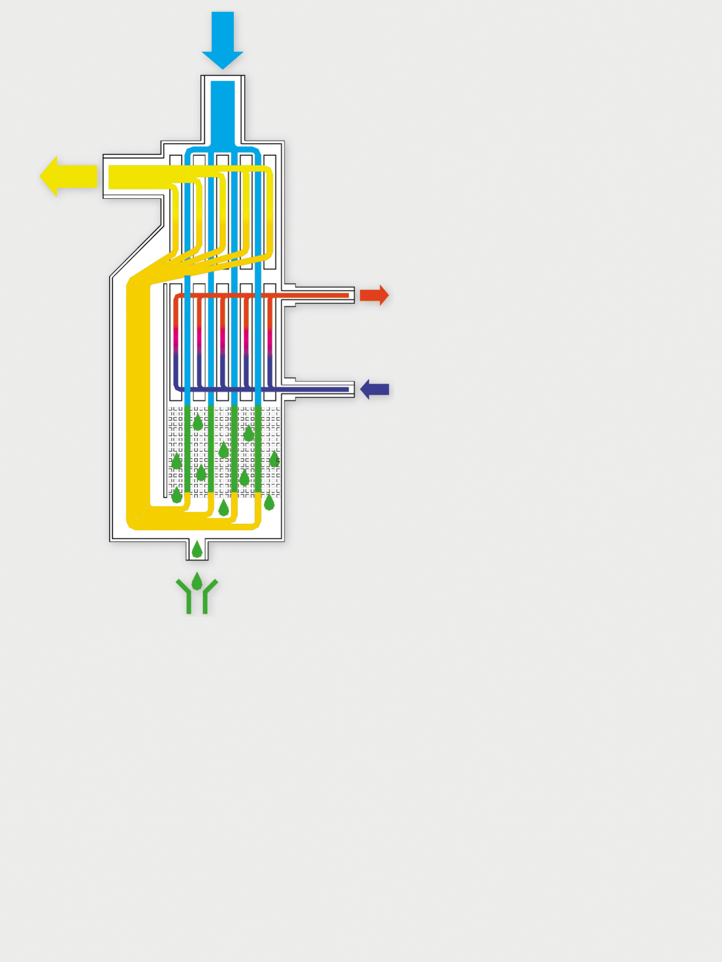 - Scambiatore di calore aria/aria e refrigerante/aria incluso demister integrato in un unico alloggiamento per risparmiare spazio
