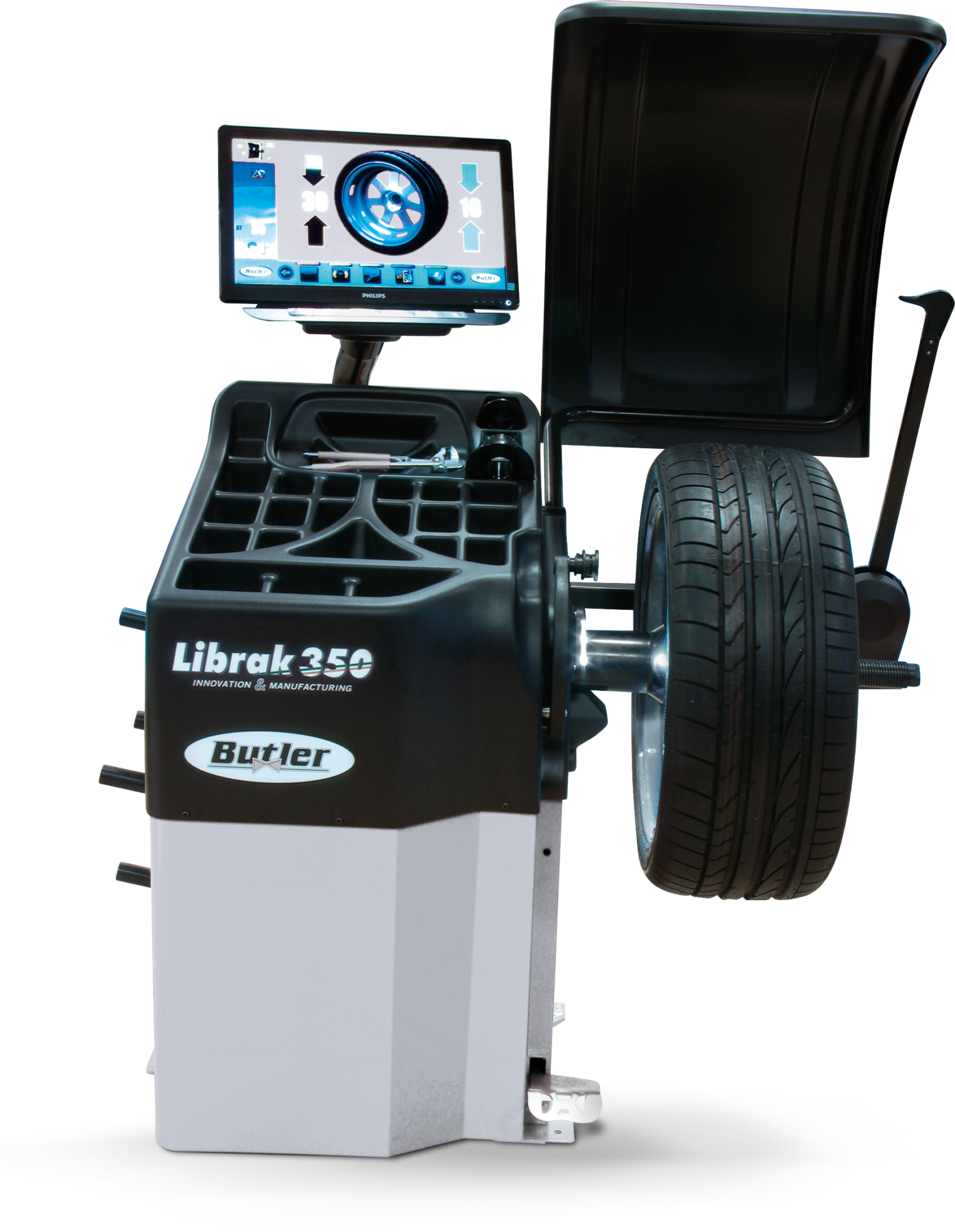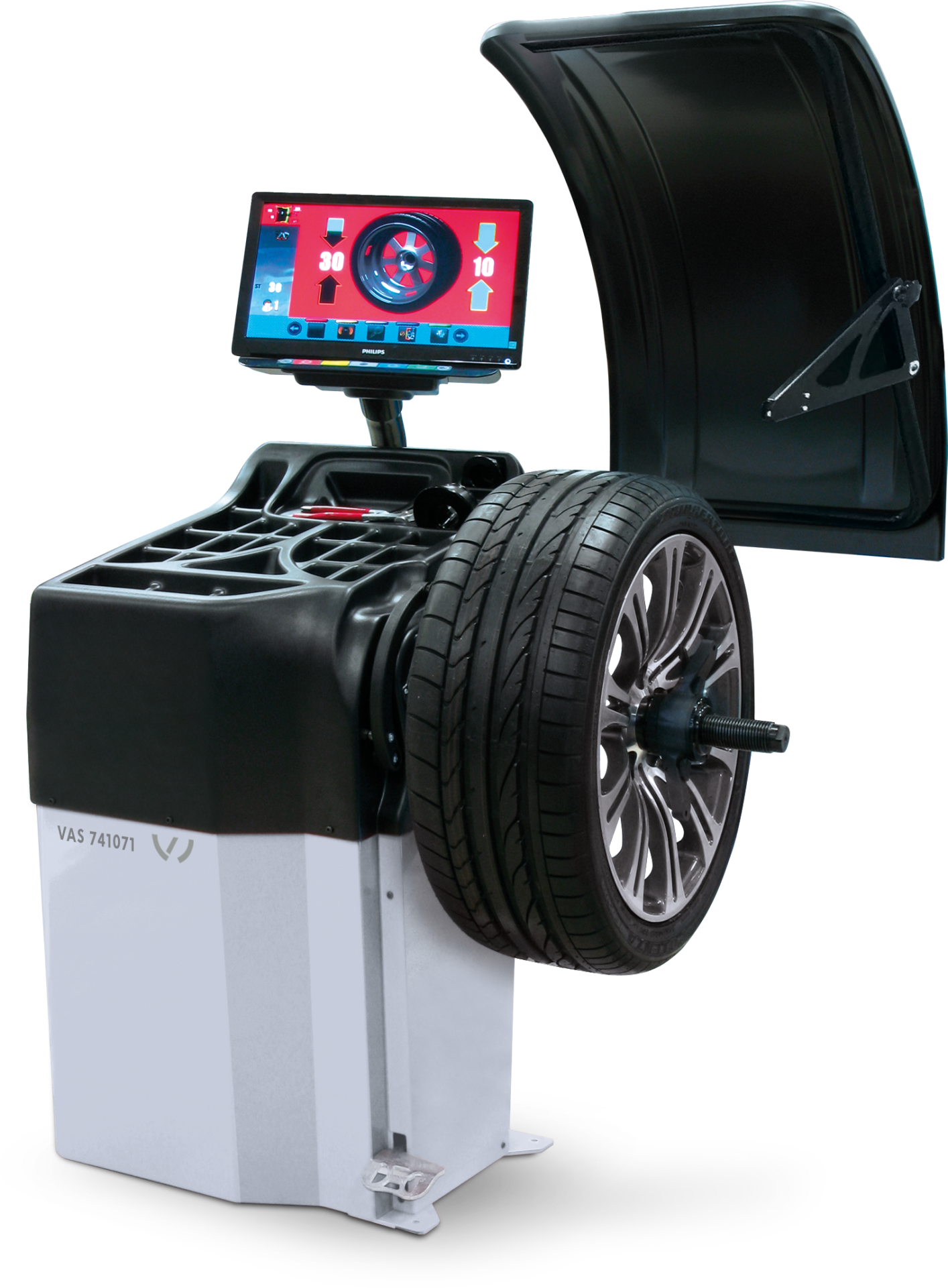 - Funzionamento rapido grazie alla sequenza automatizzata delle operazioni e al bloccaggio automatico della ruota nella posizione di squilibrio esterno