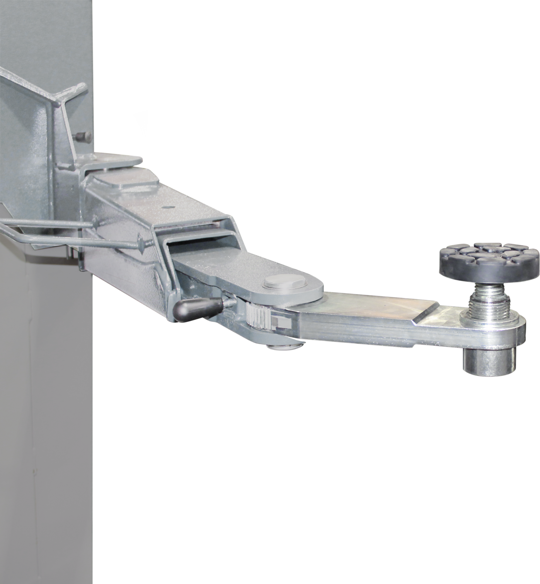 - Dank des drehenden Knickarms ist es möglich, jeden Aufnahmepunkt problemlos zu erreichen. Dadurch wird jeder Kontakt zwischen dem Fahrzeugunterbau und dem Tragarm selbst vermieden.