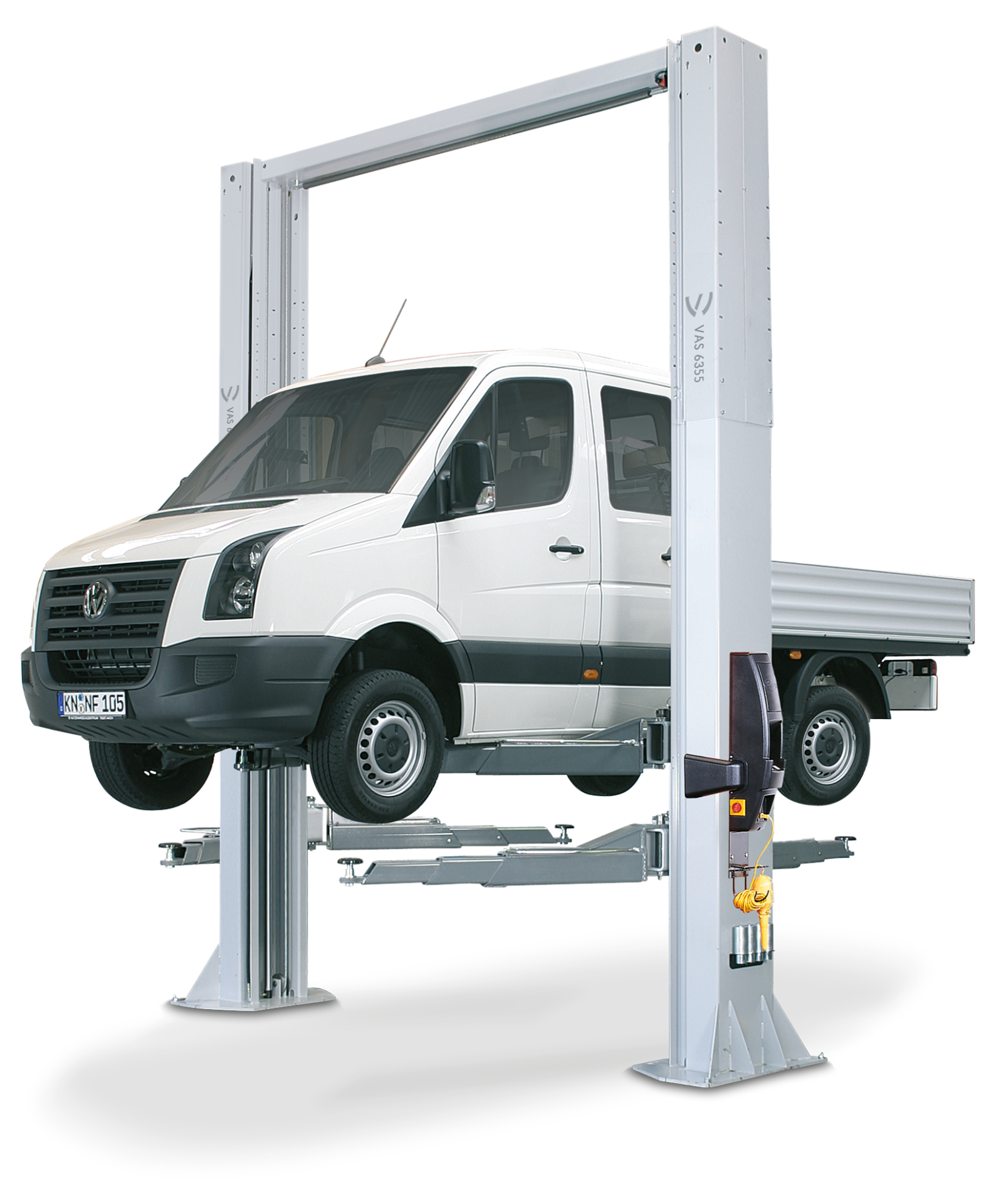 Die elektro-hydraulischen 2-Säulen Hebebühnen der VAS 6355 A -Serie überzeugen durch einen überragenden Aufnahmebereich, sie eignen sich insbesondere für Transporter Arbeitsplätze.