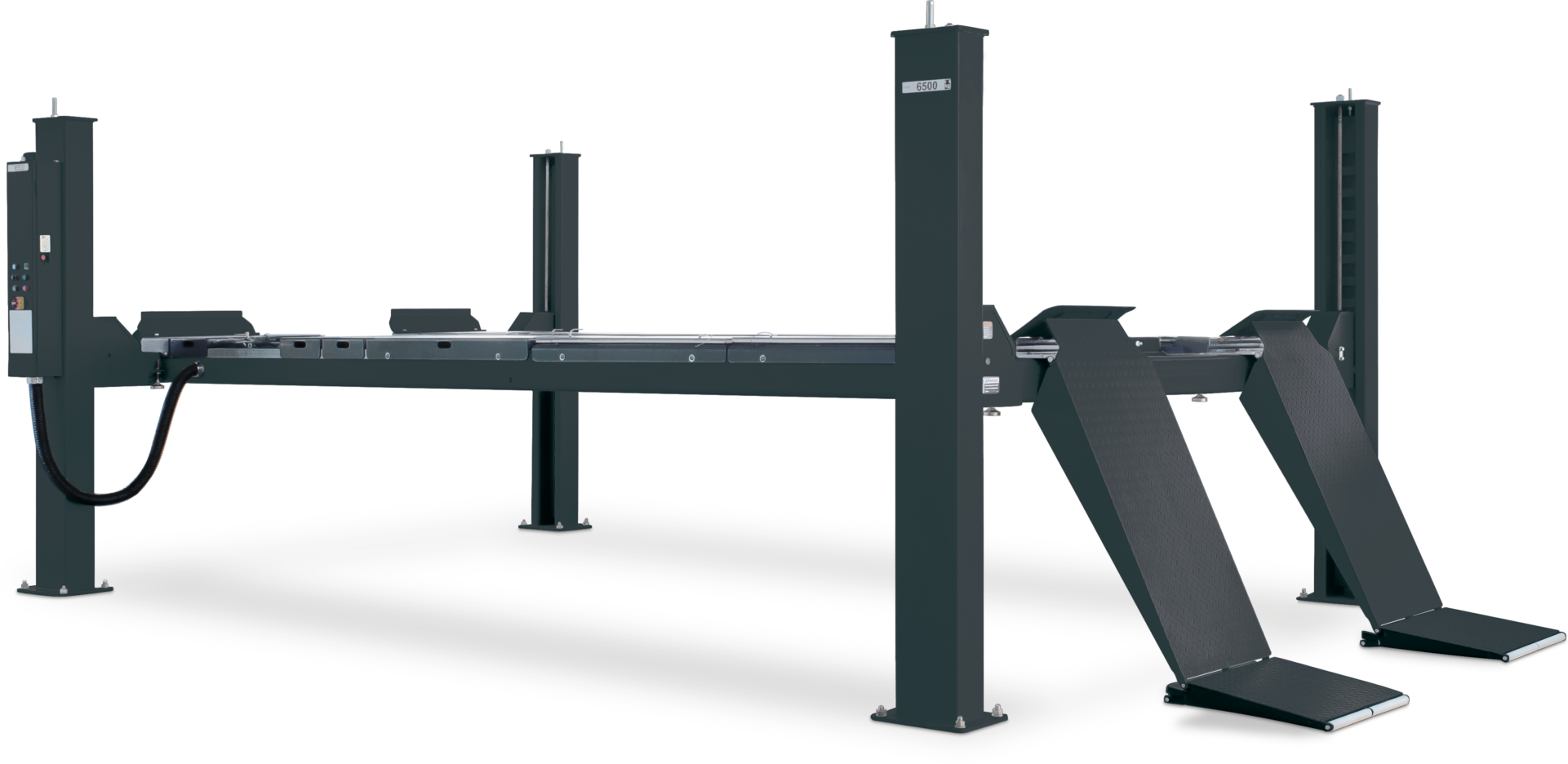 Die elektro-hydraulische 4-Säulen Hebebühne der SM65-55-MB entspricht den technischen Vorgaben von Mercedes-Benz zur optimalen Achsvermessung und ist geeignet für den Aufnahmebereich der Fahrzeuge Pkw bis leichte Nutzfahrzeuge.
