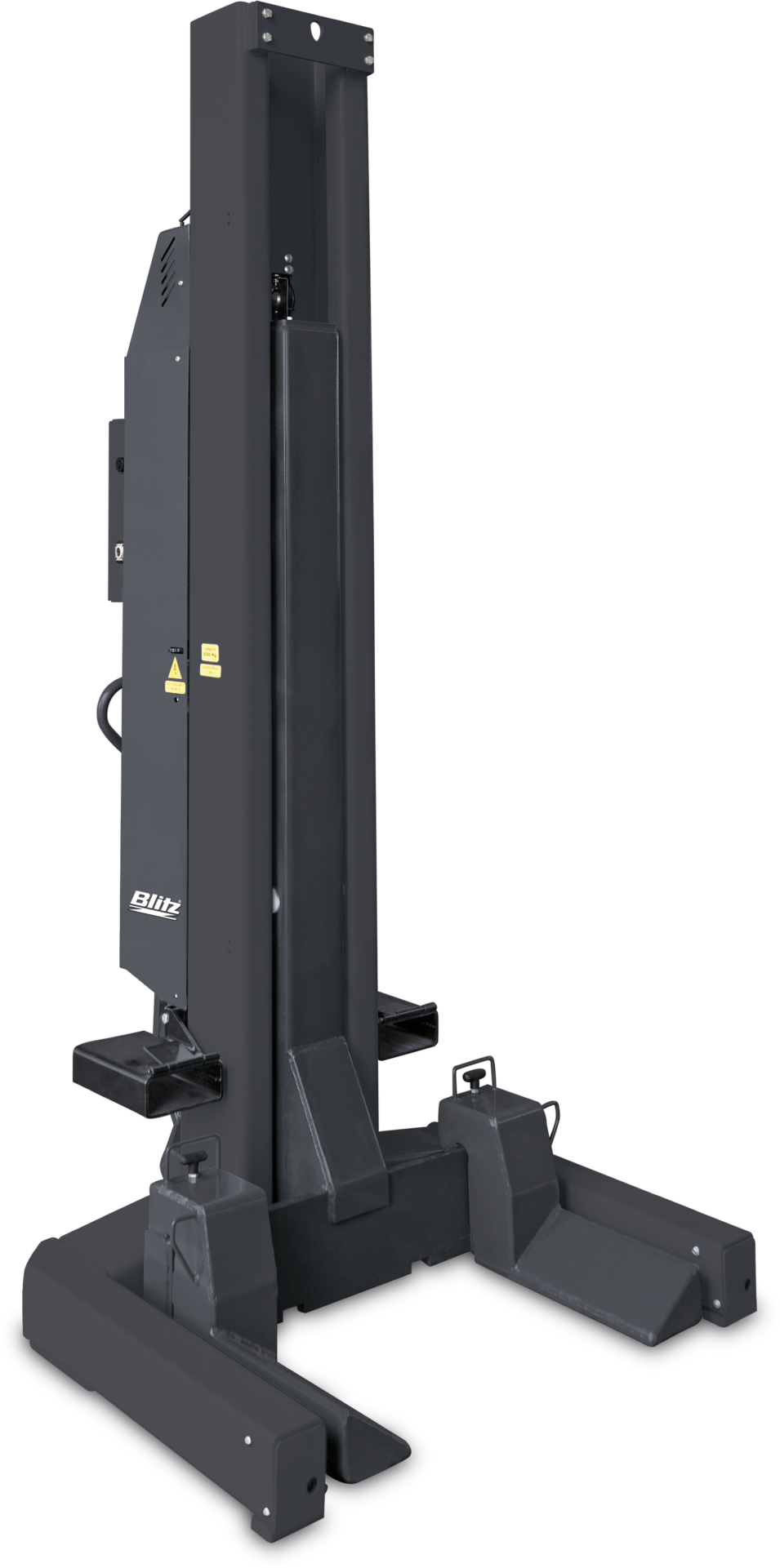 Flexibilität und Stabilität bilden bei den mobilen Radgreiferanlagen von Blitz eine perfekte Einheit. Freie Bereiche – sowohl in der Werkstatt als auch im Freien können so optimal genutzt werden.
