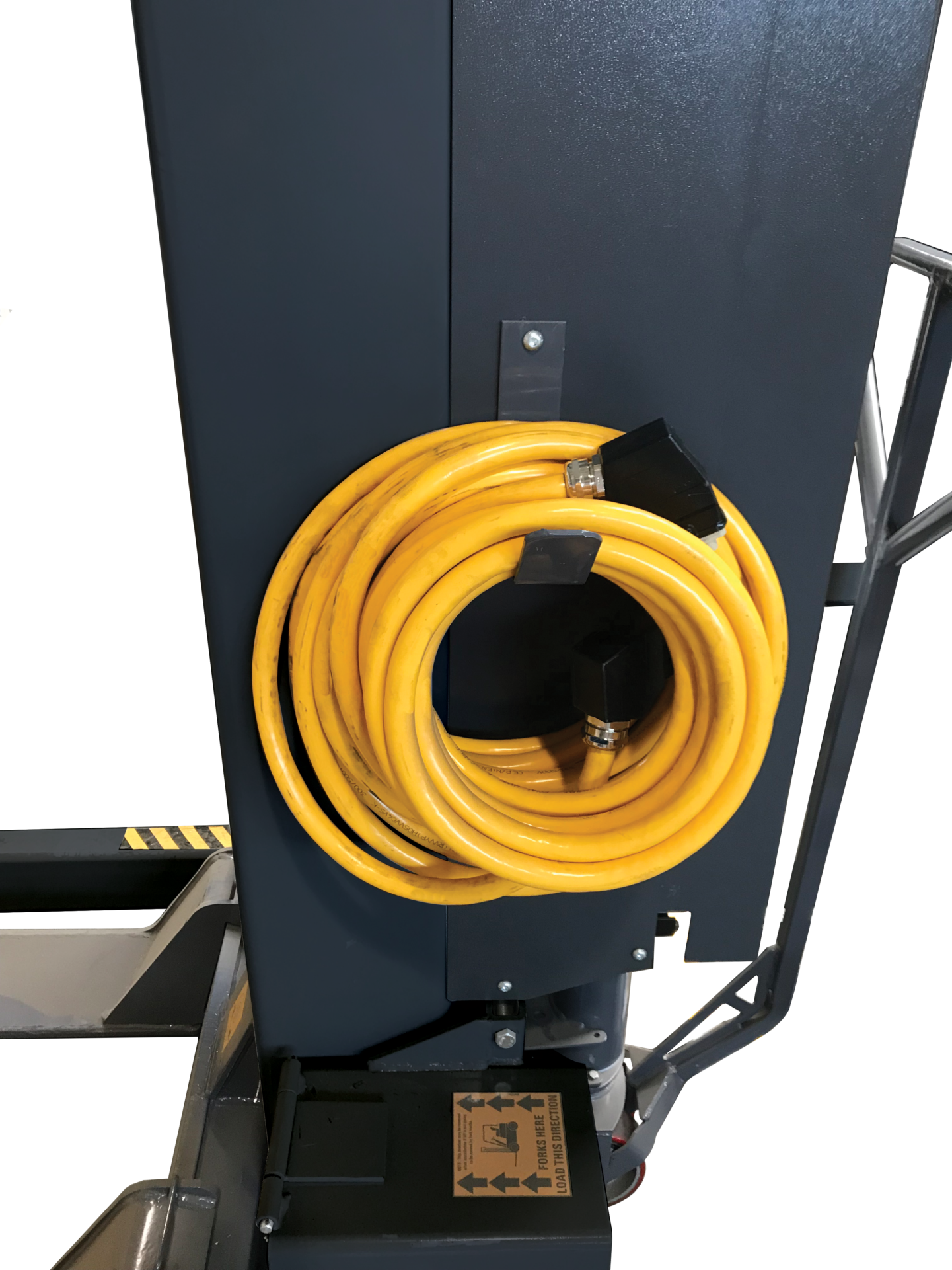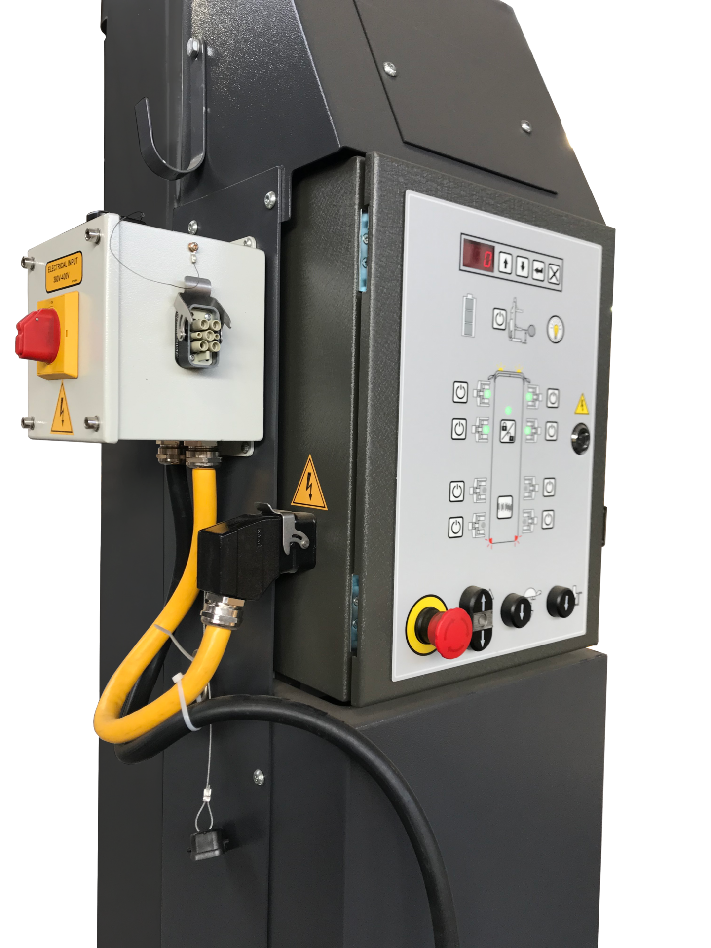 - An der Mastersäule befestigter Elektrokasten mit integriertem Hauptschalter und 10 m langen Netzkabel mit Stecker.