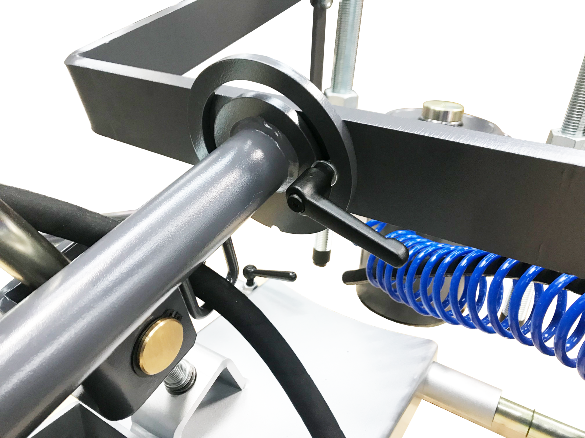 - Zylinder und Gegenhalt sind verstellbar und mit Schnellspanner verriegelbar