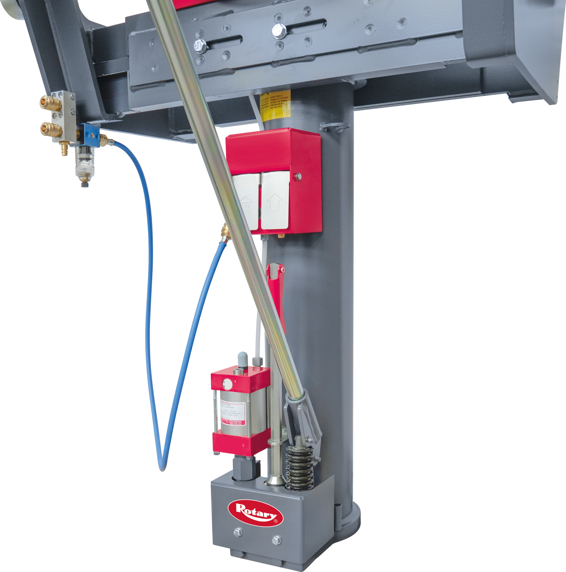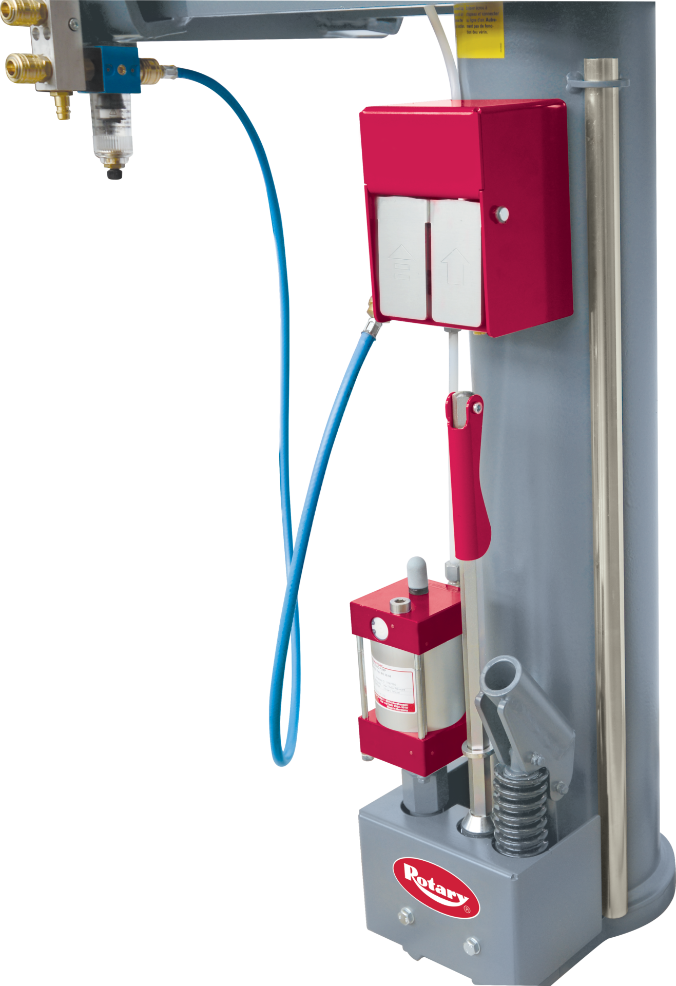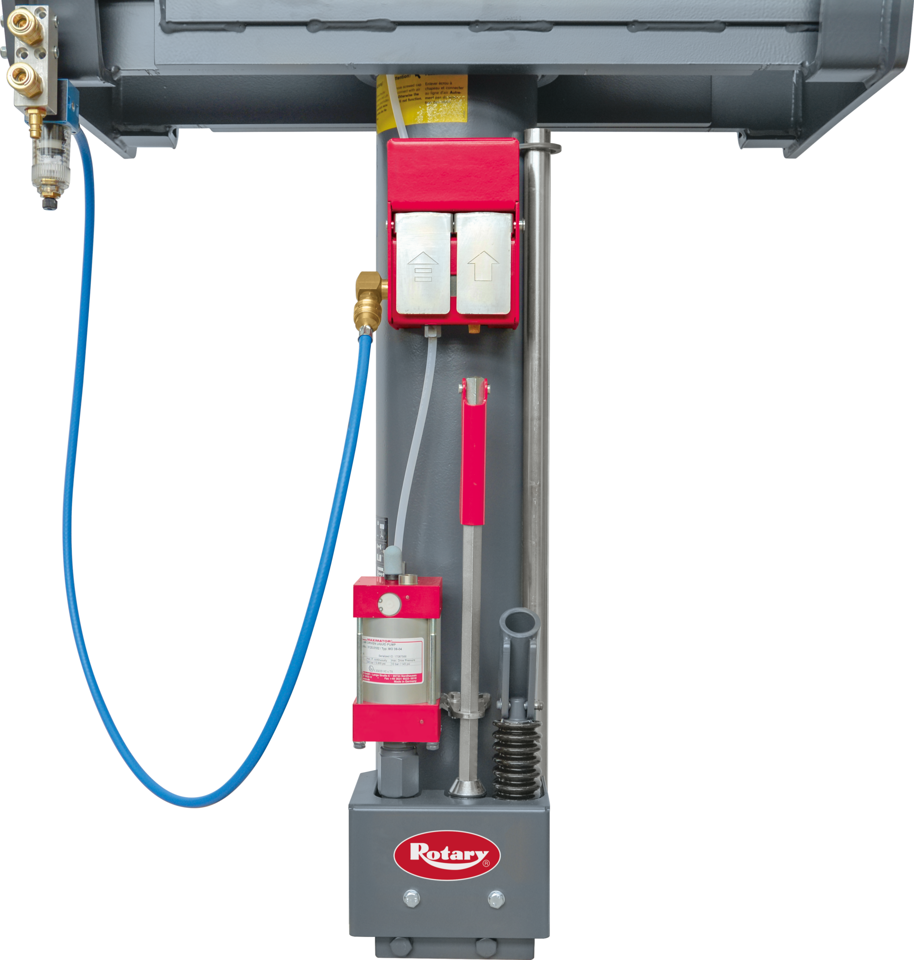 Интуитивно понятная работа с обеспечением быстрого подъемна нажимной кнопкой, дополнительная нагрузка на подъемник благодаря пневмомотору, аккуратный подъем штоком насоса и опускание ручным рычагом.
